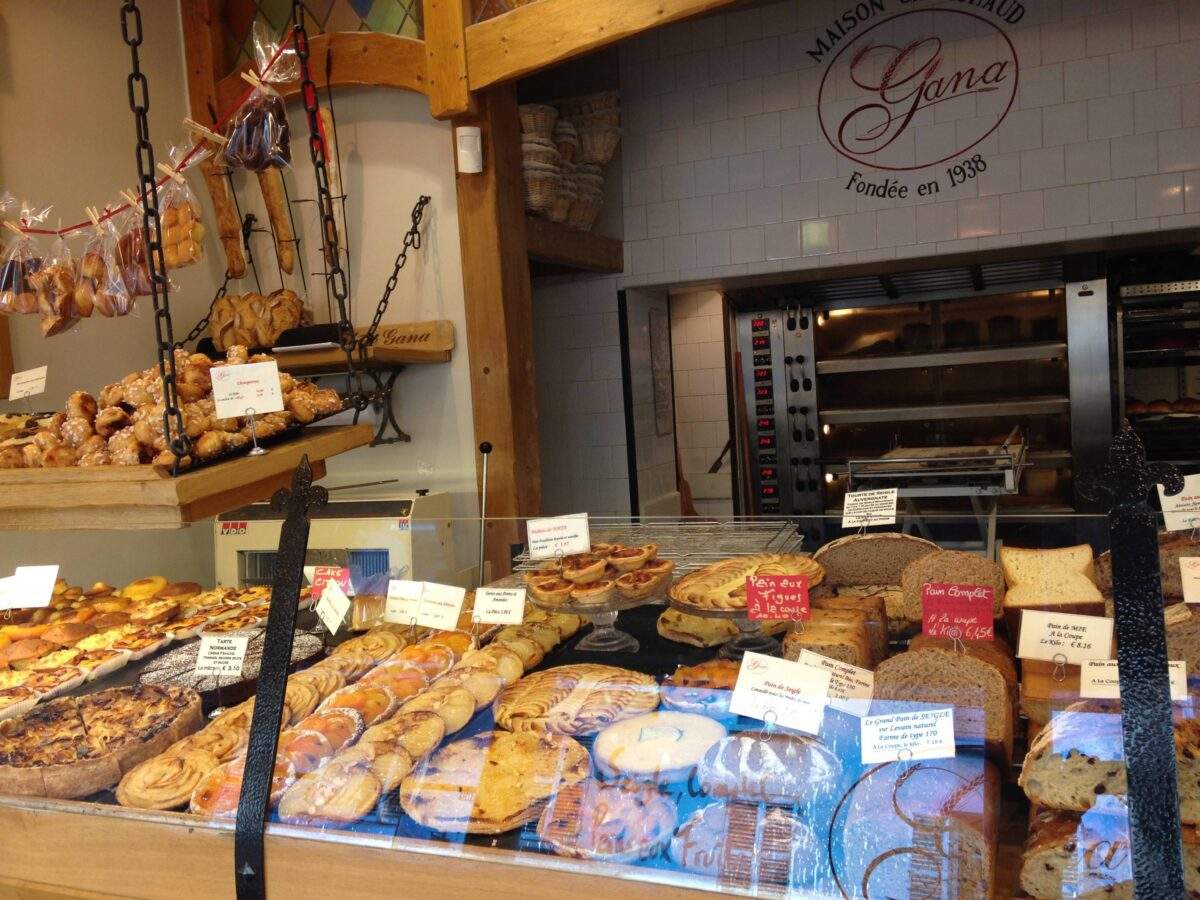 IMG_2059IMG_2058One of the best things about Paris is going each morning to the bakery to get breakfast. Baguettes, and pain au chocolat are our favorites, though occasionally we go wild and get other types of croissants and a variety of brioches and pastries. There are LOTS of bakeries in our neighborhood– I can think of six without even trying– and now we have a wonderful new addition. Maison Ganachaud just opened up on Rue Oberkampf. The Ganachaud family has been baking bread and had bakeries in Paris, according to the sign, since 1938 but this is new location for them. I had a great discussion with the man selling me my bread the first day, and he said that Maison Ganachaud prides itself on the fact that ALL of its baguettes (those called “tradition” and those that are the “regular” baguette) are put through a double rising process, which he says is what gives the baguettes their wonderful airy quality and “holey” interiors. IMG_2063